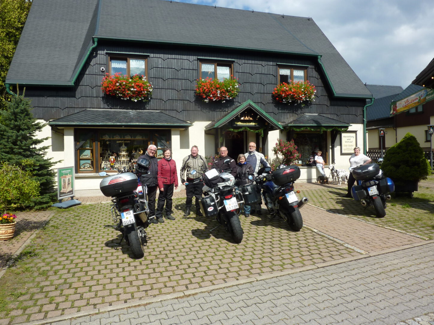 Am 31. August 2025 ging es für eine Woche mit Motorrad auf dem Anhänger mit meinem Mann Heinz los. Die Anfahrt verlief sehr entspannt. Es war Sonntag, wenig Verkehr auf den Autobahnen. Das Erzgebirge kannten wir von früheren Touren. Das Hotel „Landhaus Bergidyll“ lag, wie der Name versprach, Idyllisch zwischen Wiesen und angrenzendem Wald in Bärenstein/Niederschlag. Die Grenze zu Tschechien in unmittelbarer Nähe was bedeutet schöne Touren, günstig tanken. Angemeldet hatten sich 22 abstinente Teilnehmer, aus ganz Deutschland. Vom Süden bis in den Norden. Auch Manni aus dem Freundeskreis Sucht war wieder dabei.